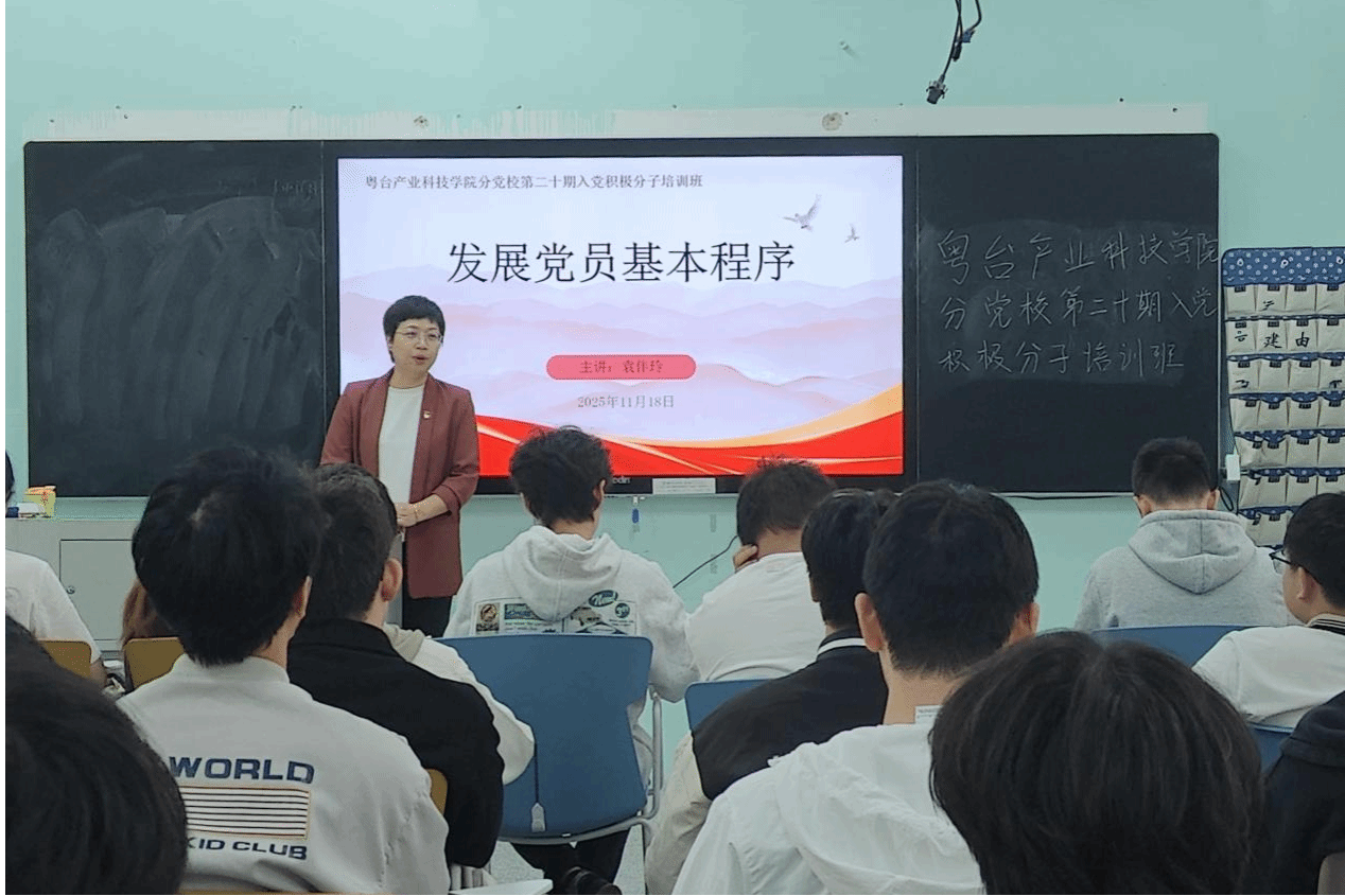 课上,袁伴玲老师以专题培训的形式,为全体入党积极分子带来了一场内容扎实、指导性强的发展党员基本程序解读。她结合党务工作经验,拆解发展党员全流程,明确各阶段核心环节、时间节点与材料规范,还通过案例分析、答疑等方式,帮助入党积极分子准确掌握发展党员各阶段的核心要点。她鼓励大家要将规范要求内化于心、外化于行,把对党的向往转化为遵守组织原则、规范自身言行的自觉行动,在日常学习工作中以党员标准严格要求自己,主动接受党组织的培养和考察,以实际行动向党组织靠拢。