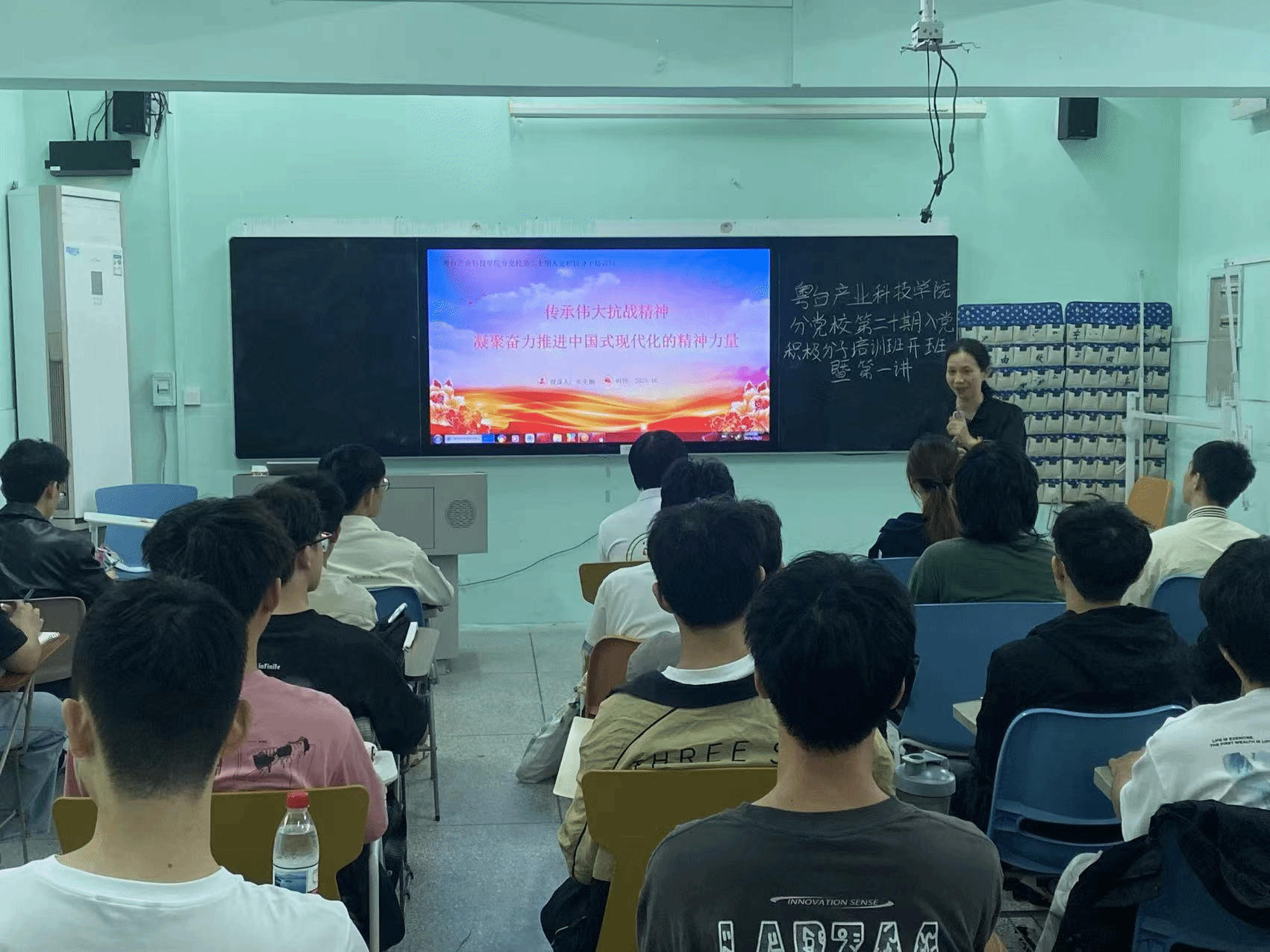 分党校第二十期入党积极分子培训班在莞城校区实验楼315教室正式开班。学院党委书记宋美娴以“传承伟大抗战精神,凝聚奋力推进中国式现代化的精神力量”为主题,为全体学员带来了精彩的第一讲。